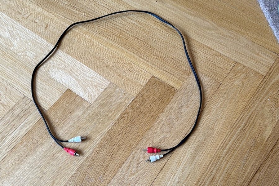 RCA-kabel med röd och vit kontakt i båda ändar. Används för att överföra analog ljudsignal mellan ljudenheter.