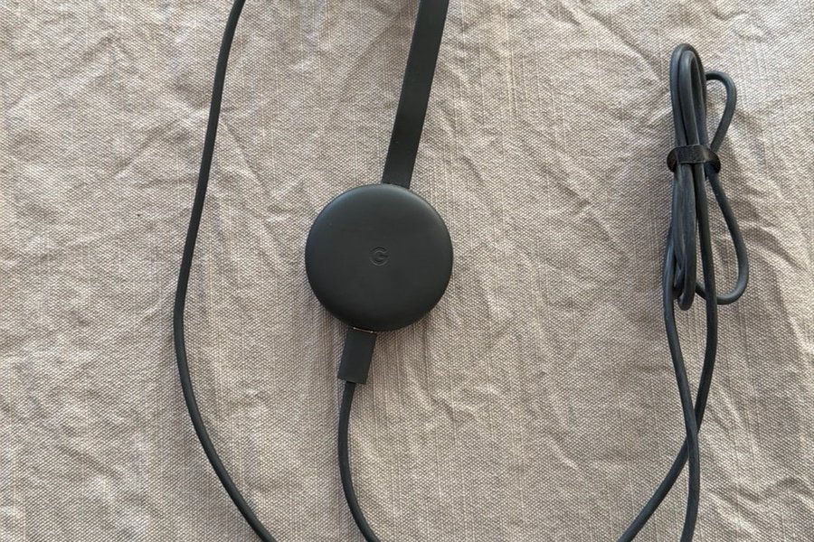 Google Chromecast för att streama innehåll till din TV. Ansluts via HDMI och drivs via USB.