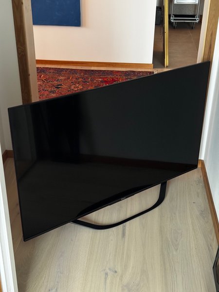 TV från Hisense som fått toppbetyg i tester. Modell 55U7KQ. Förutom bordsställ medföljer även vägghängning.