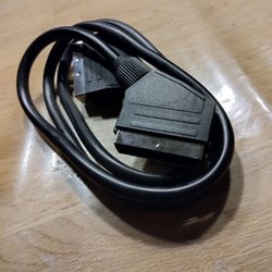 Svart kabel med olika kontakter.