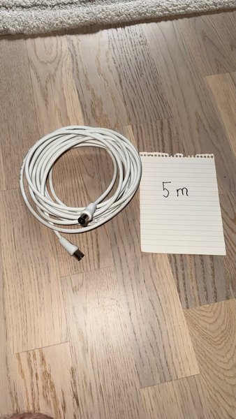 Antennkabel på 5 meter. Kabeln är vit och har standardanslutningar hane / honkontakter.