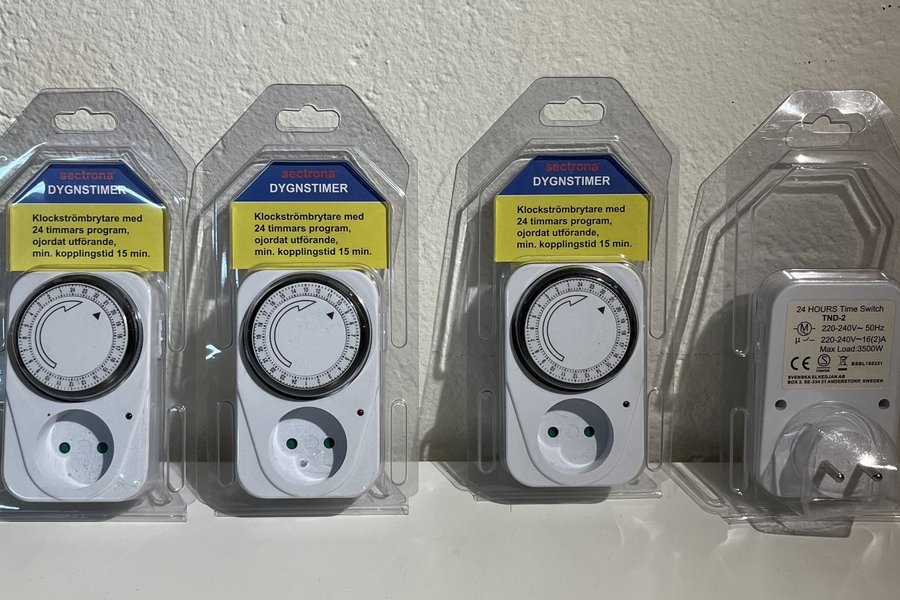4 st Sectrona Dygnstimer klockströmbrytare med 24 timmars program, ojordat utförande.