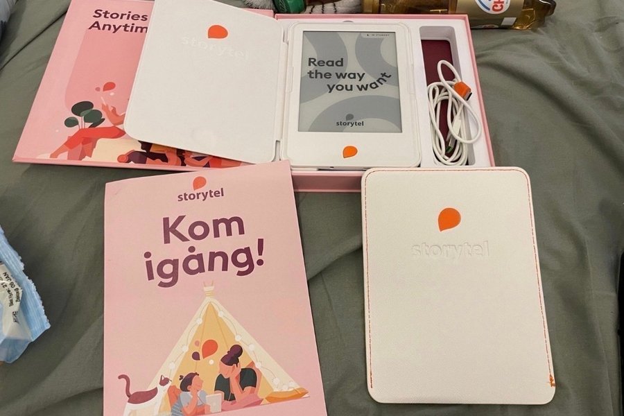 Storytel reader läsplatta med tillhörande fodral. Perfekt för att läsa dina favoritböcker.
