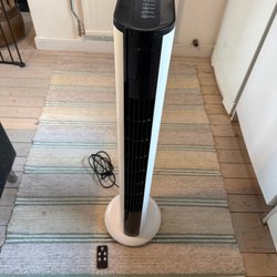 Cotech Tower Fan modell FTD-DC. Denna tornfläkt har olika lägen för swing, timer och hastighet. En fjärrkontroll medföljer.