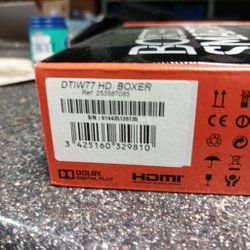 Detta är en digitalbox från Boxer, modell Sagemcom DTW77 HD. Den är avsedd för mottagning av digitala TV-sändningar. Boxen har anslutningar som HDMI, USB, Ethernet, optisk ljudutgång och antenningång. Den har även en plats för Viaccess-kort.