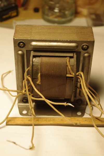 Nättransformator för 220V med följande sekundärlindningar: 5 V, 6,3 V, 370-0-370 V. Provad u.a.