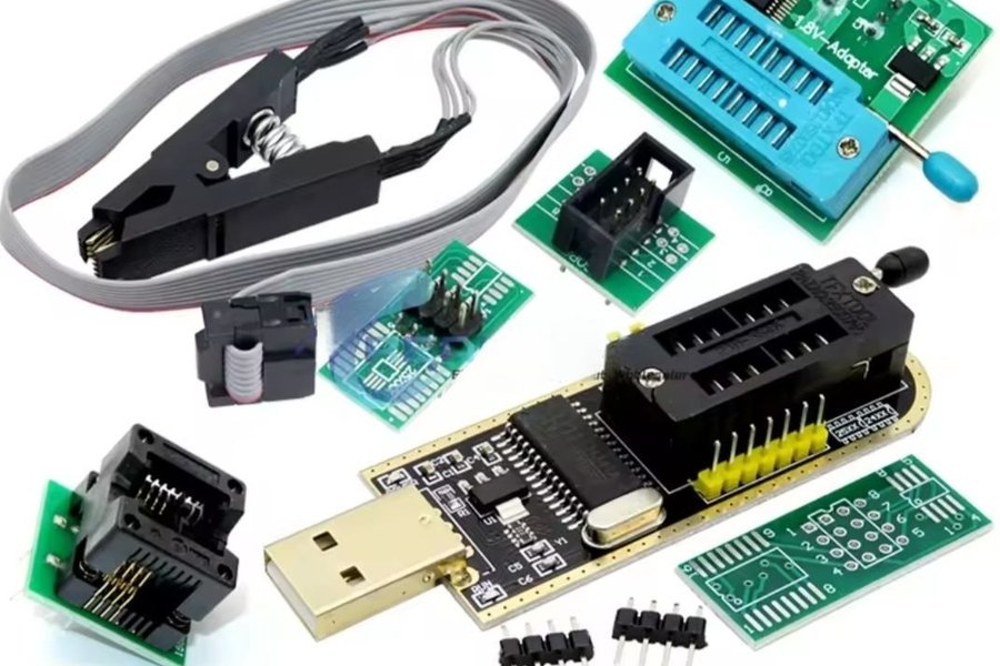 CH341A USB Programmerare + SOIC8 Test Clip – BIOS / EEPROM Flash