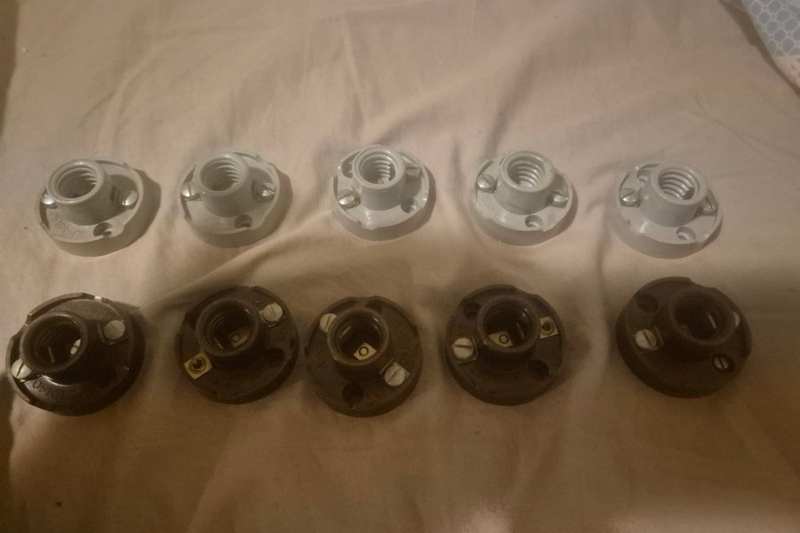 Parti med 10 stycken lamphållare. Fem vita och fem svarta. Passar för E14 2 skruvar saknas på två lamphållare