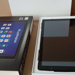 Android bilradio med diverse kabler og monteringsbeslag. Instruktionsmanual medfølger.