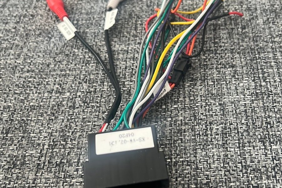 ISO-kabel för bilstereo. Kabeln har RCA-anslutningar och flera färgkodade ledningar för olika funktioner. Modellen är märkt "KS-VW-07, 101 04F20".