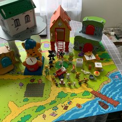 Ett charmigt Lundby dockhus med flera rum och våningar. Tapetserat med olika mönster i varje rum. Trappa mellan våningarna.