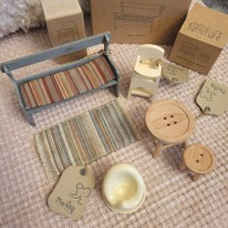 Ett dockskåp är inte komplett förrän det är inrett med små söta dockmöbler. Bland annonserna på Tradera har man möjlighet att hitta alltifrån stolar, bord och sängar till lampor, trasmattor och speglar i miniformat. Köp möbler till dockhus second hand och gör en bra sak för plånbok och miljö!