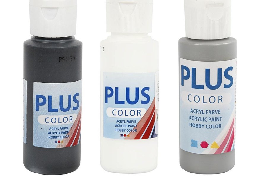 3 flaskor hobbyfärg från PLUS color. Á 60 ml.