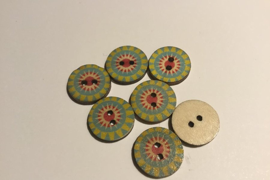7 st mönstrade träknappar / 1,5 cm
