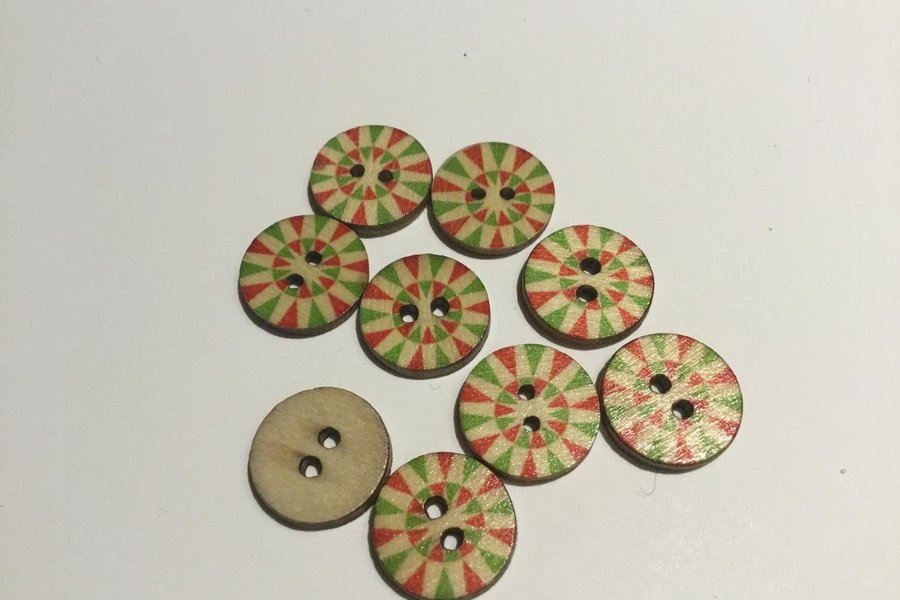 9 st mönstrade träknappar / 1,5 cm