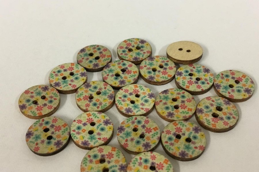 19 träknappar med flerfärgat mönster /1,5 cm