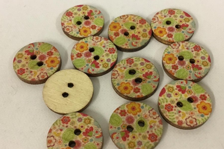 11 st mönstrade träknappar / 1,5 cm