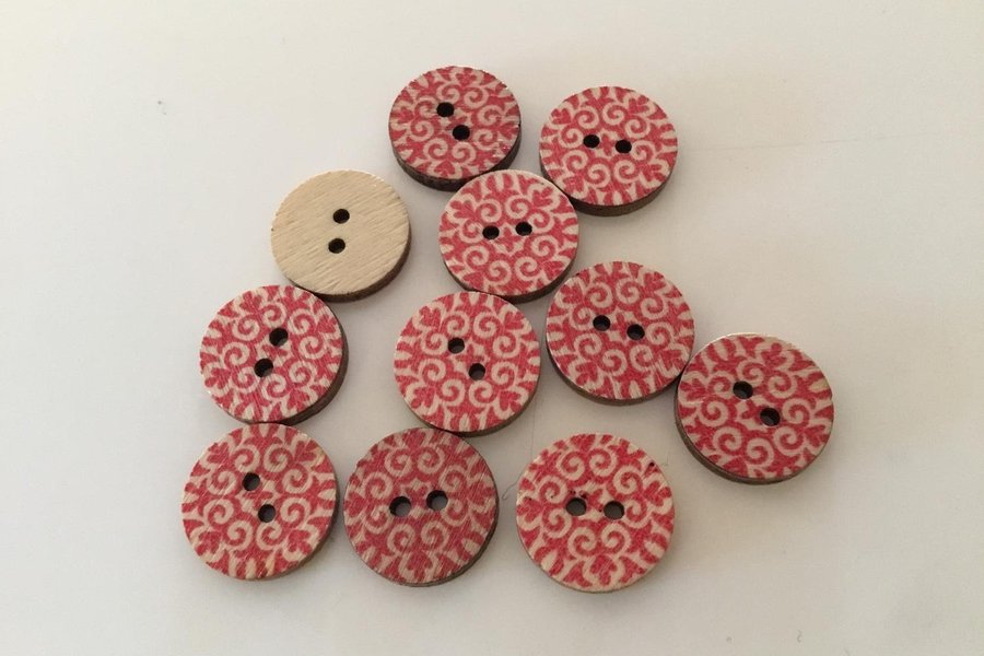 11 st mönstrade träknappar / 1,5 cm
