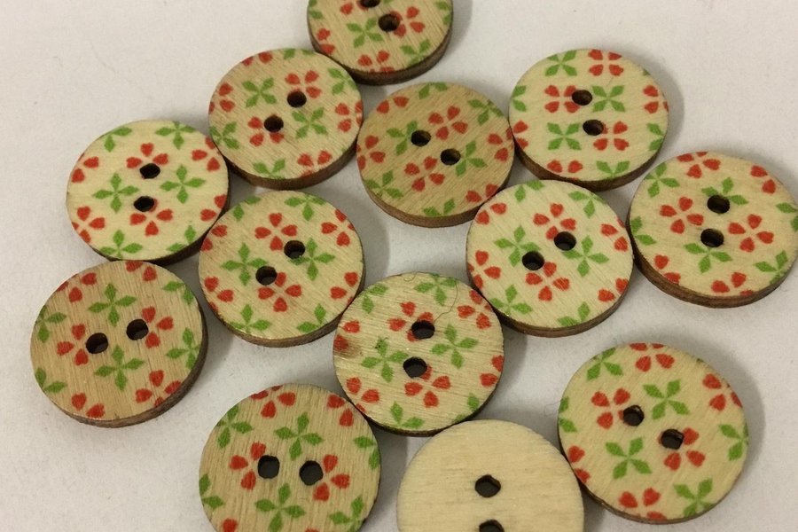 13 st mönstrade träknappar / 1,5 cm