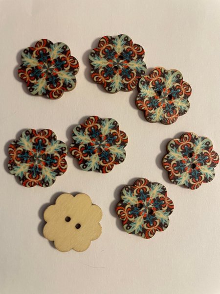 8 Mönstrade Träknappar- 2 cm