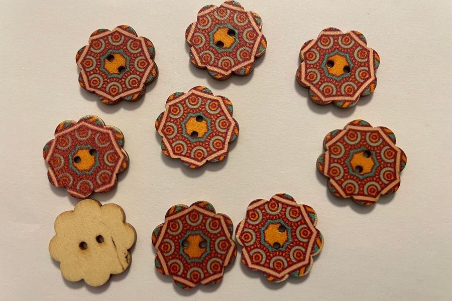 8 st mönstrade träknappar / 2 cm