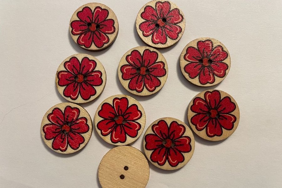 10 st knappar i trä - Retro / 2 cm