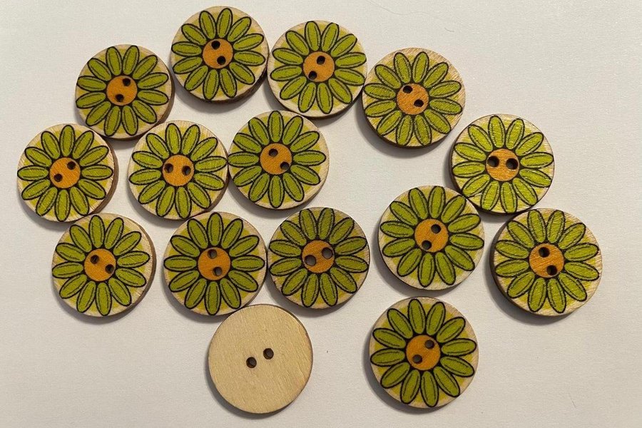 15 st knappar i trä - Retro / 2 cm