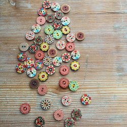 28 tvåhåls träknappar med flerfärgat mönster /1,5 cm som bilden visar