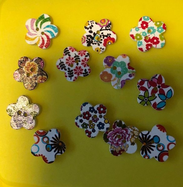 15 trä knappar blom mönster