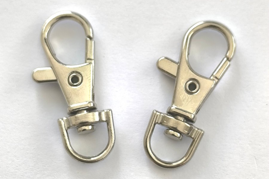 Karbinhake, karbinlås. "Silver". Yttermått 38x18 mm (för bandbredd 10 mm )