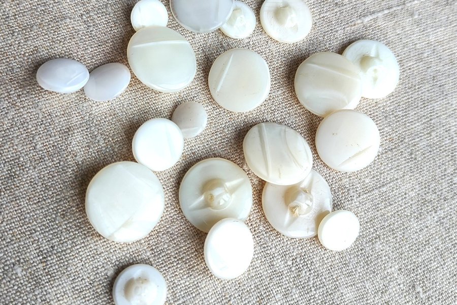 En samling av 20 st glasknappar, undersydda, halvtransparanta, 10-19 mm.