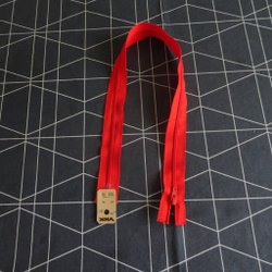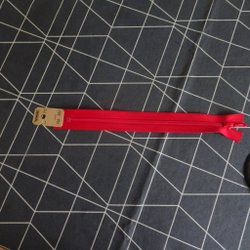Åtta röda runda knappar med två hål för fastsättning.