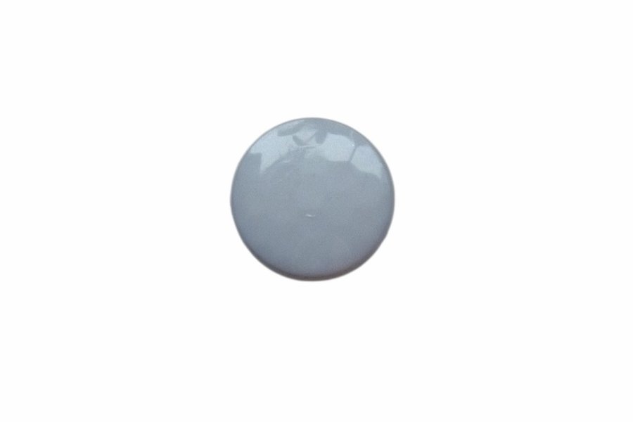 Knapp i grått. 1,5 cm i diameter. 3 mm i tjocklek. Säljes i 6-pack. Svagt hamrad yta.