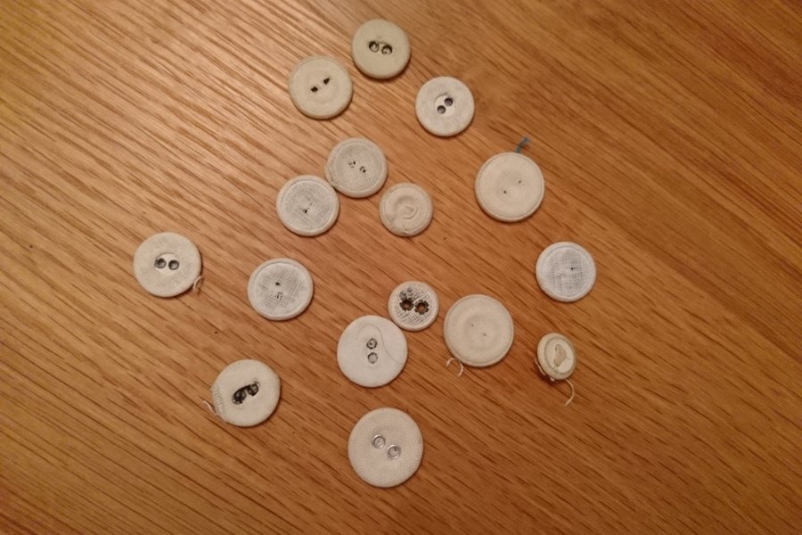 retro tygklädda knappar i olika storlekar