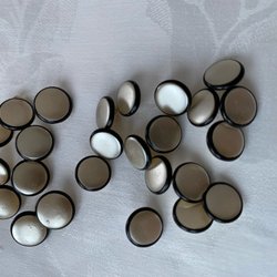 Tre svarta undersydda glasknappar med silverdekor, Art Deco-stil, 18 mm. Samfraktar naturligtvis om du köper flera objekt!