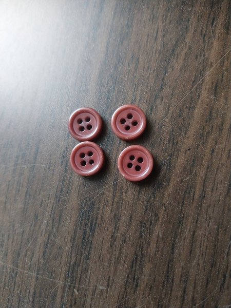 Fyra runda knappar med fyra hål i mitten.