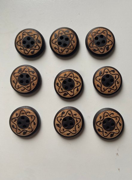 Träknappar 18mm 9 st vackert mönster