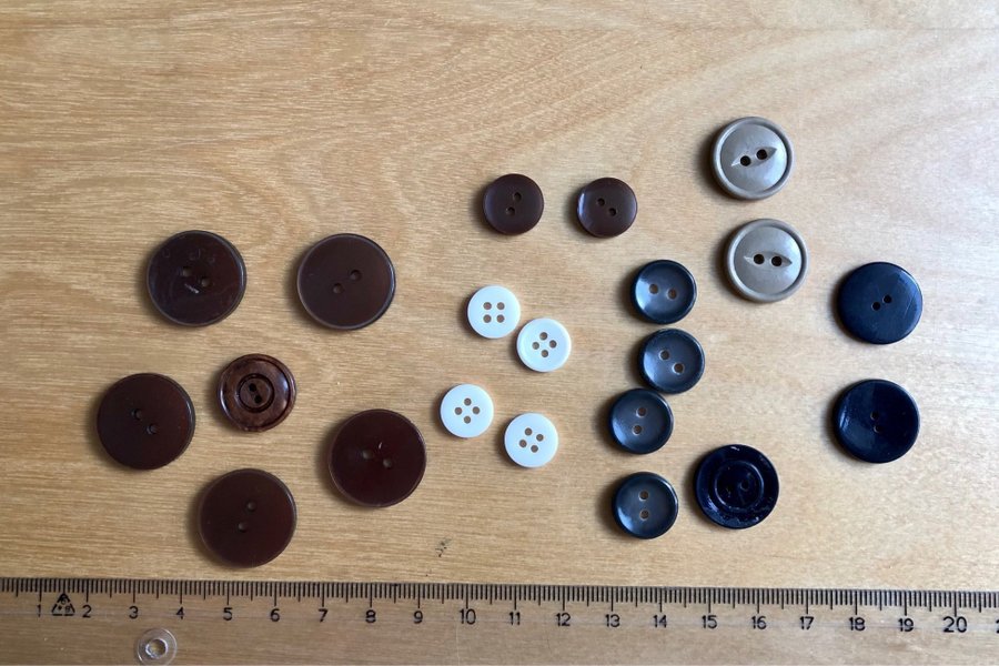 Knappar, enl bild. Div färger o storlekar. Nyskick