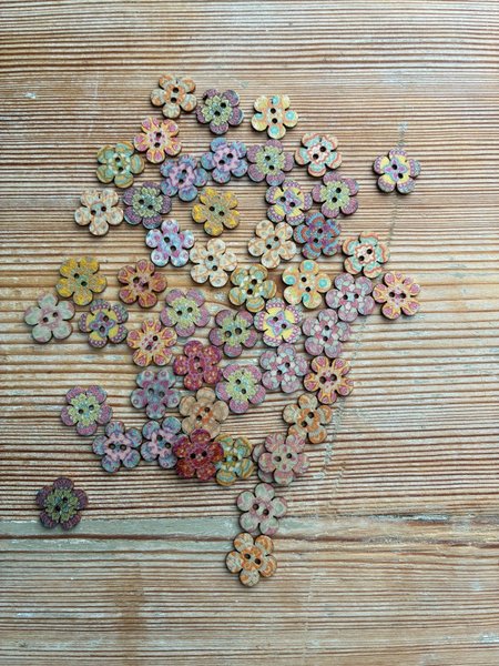Vackra knappar i trä till virkning, stickning, sömnad eller pyssel. 15 mm i diameter