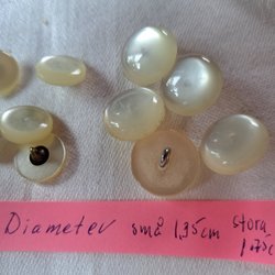 Nio stycken skimrande knappar. plast.