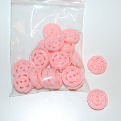 8 st runda knappar med skiftande mönster. Varje knapp har en blank yta och en infästning på baksidan.