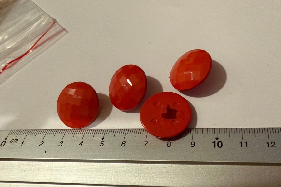 4 röda plastknappar retro