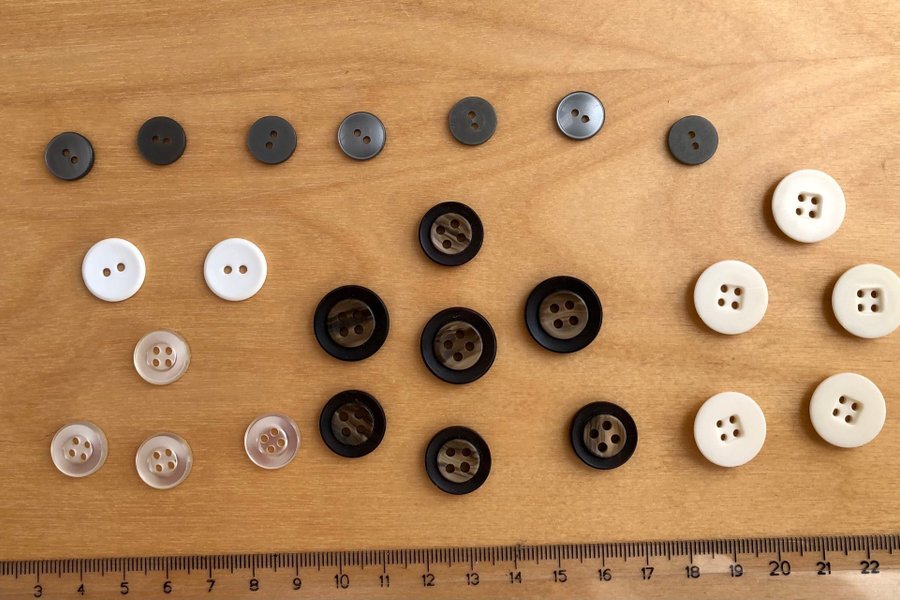 Knappar, enl bild. Div färger o storlekar. Nyskick