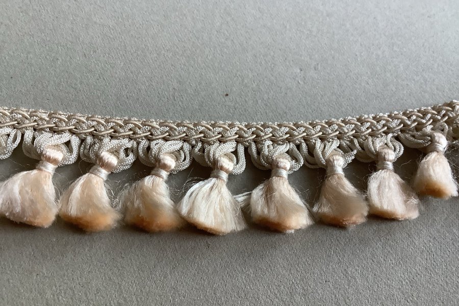 Tofsfrans i cremefärg 9 m x 4 cm inkl bård och tofs