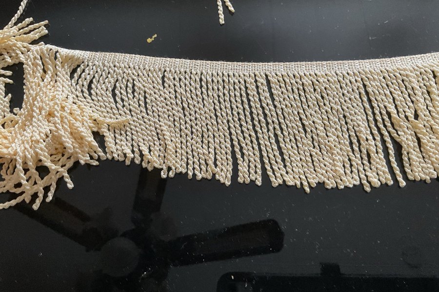 2 cremfärgade fransar 2,15 m + 2;20 m x 9 cm