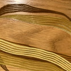 Perfekt för sömnadsprojekt. Bredd ca 2 cm Längd ca 4 m. Har även ute en smalare snedslå i liknande färg.