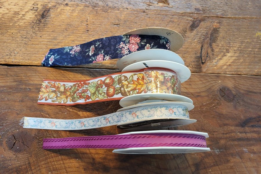 Dekorativa band, de breda till rosetter i blomsteruppsättningar t ex.