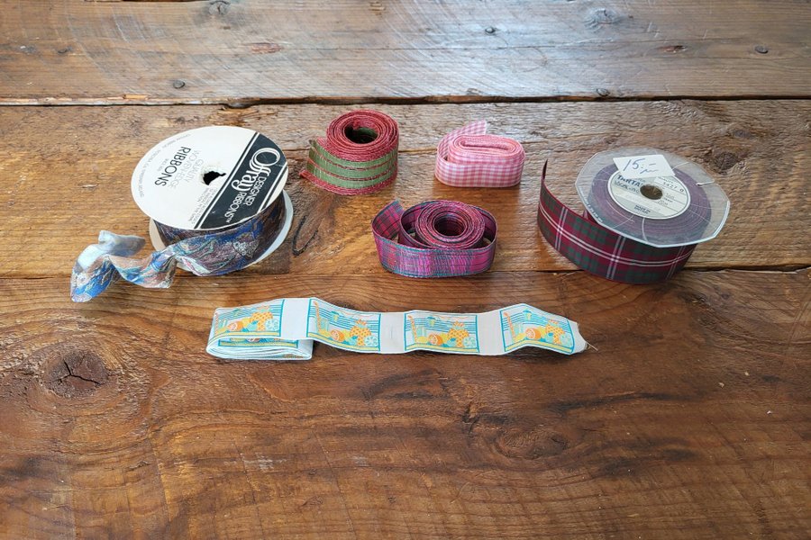 Diverse dekorband, en rulle med ståltråd i kanterna.