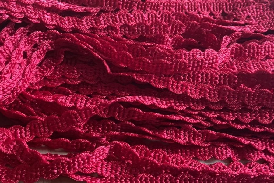 Band i rött drygt 27 m x 9 mm mer klarröd