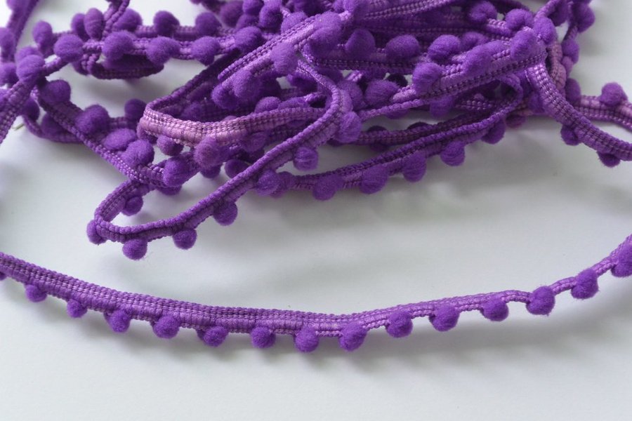 Bollfrans ca 8 mm bred, D 7 mm, lila, 100% polyester.